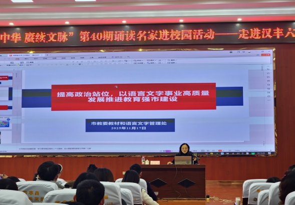在汉丰六小政策解读专场,市教委教材和语言文字管理处处长邱小红以《提高政治站位,以语言文字事业高质量发展推进教育强市建设》为题,从“语言文字工作历史、工作形势、工作任务”三方面作了专题讲座。她强调,语言文字工作是一项涉及国计民生、民族团结、立德树人的伟大工程,具有鲜明的政治属性、人民属性、战略属性,要在高质量推广普及国家通用语言文字、传承弘扬中华优秀语言文化、探索语言文字事业数字化赋能新举措、加强语言文化交往交流等方面持续用力,构建语言文字工作治理新格局。