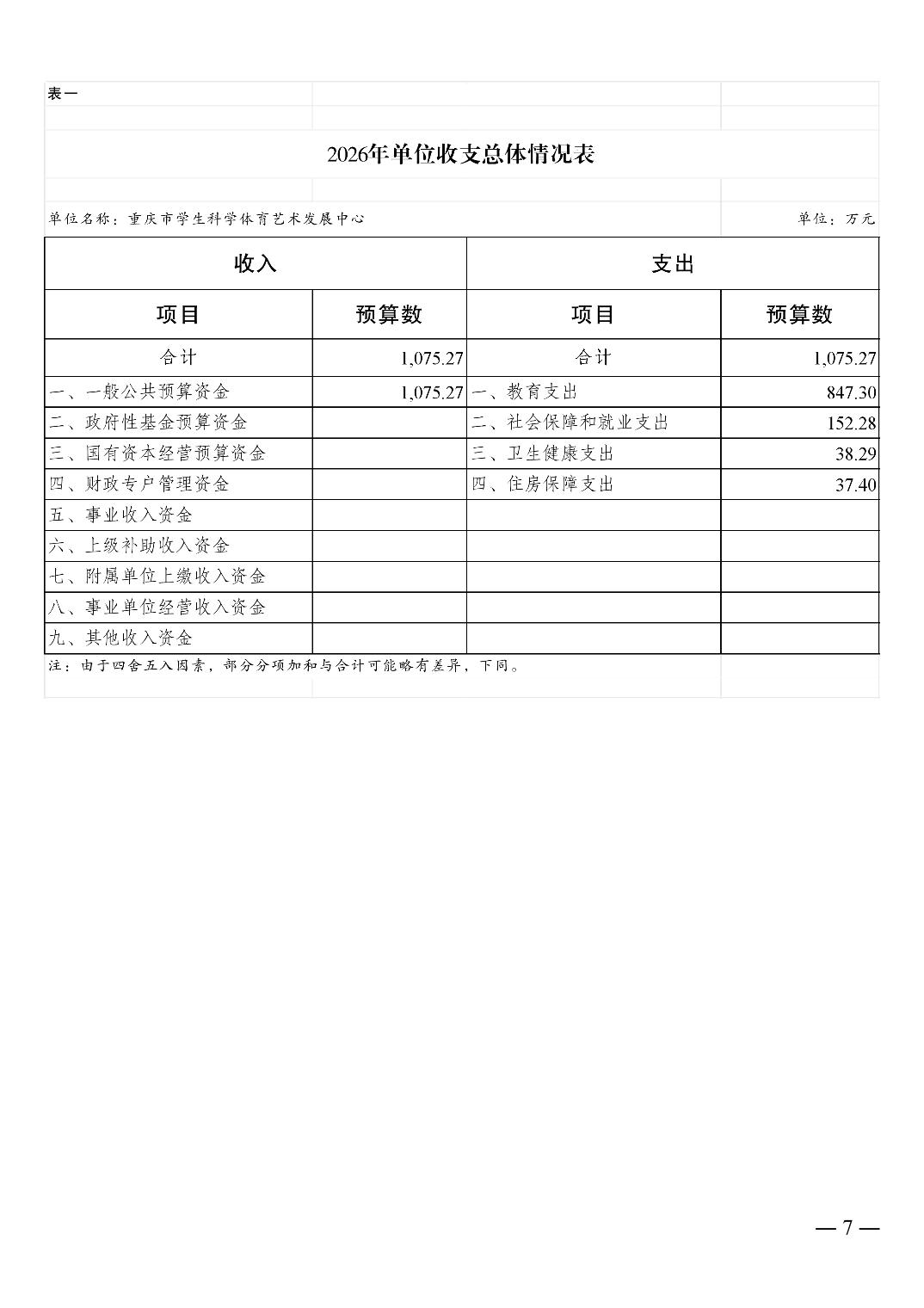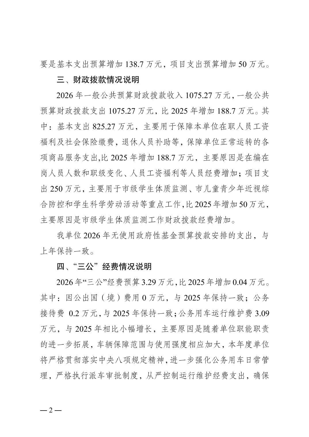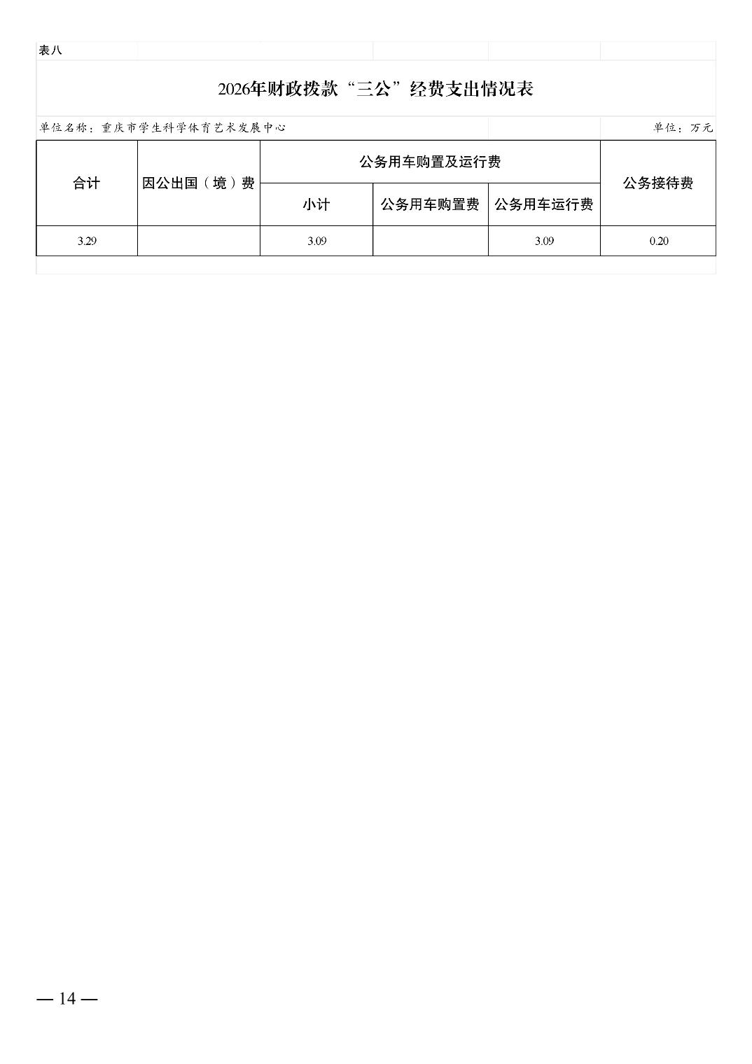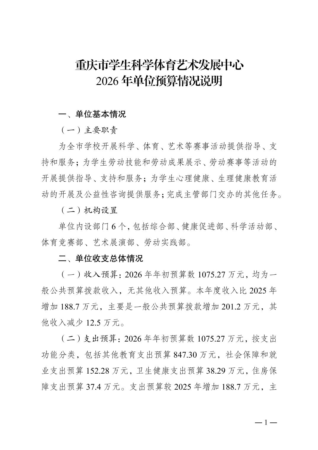 重庆市学生科学体育艺术发展中心2026年单位预算情况说明