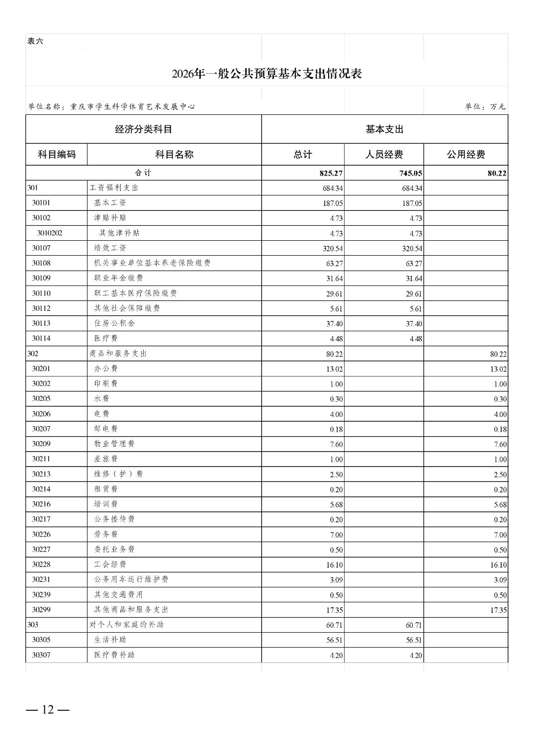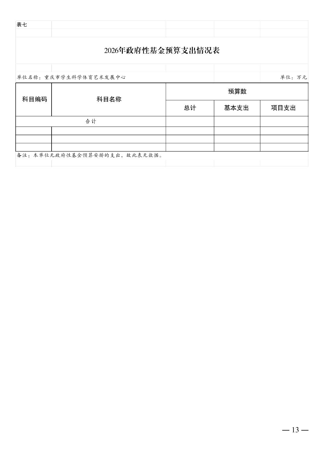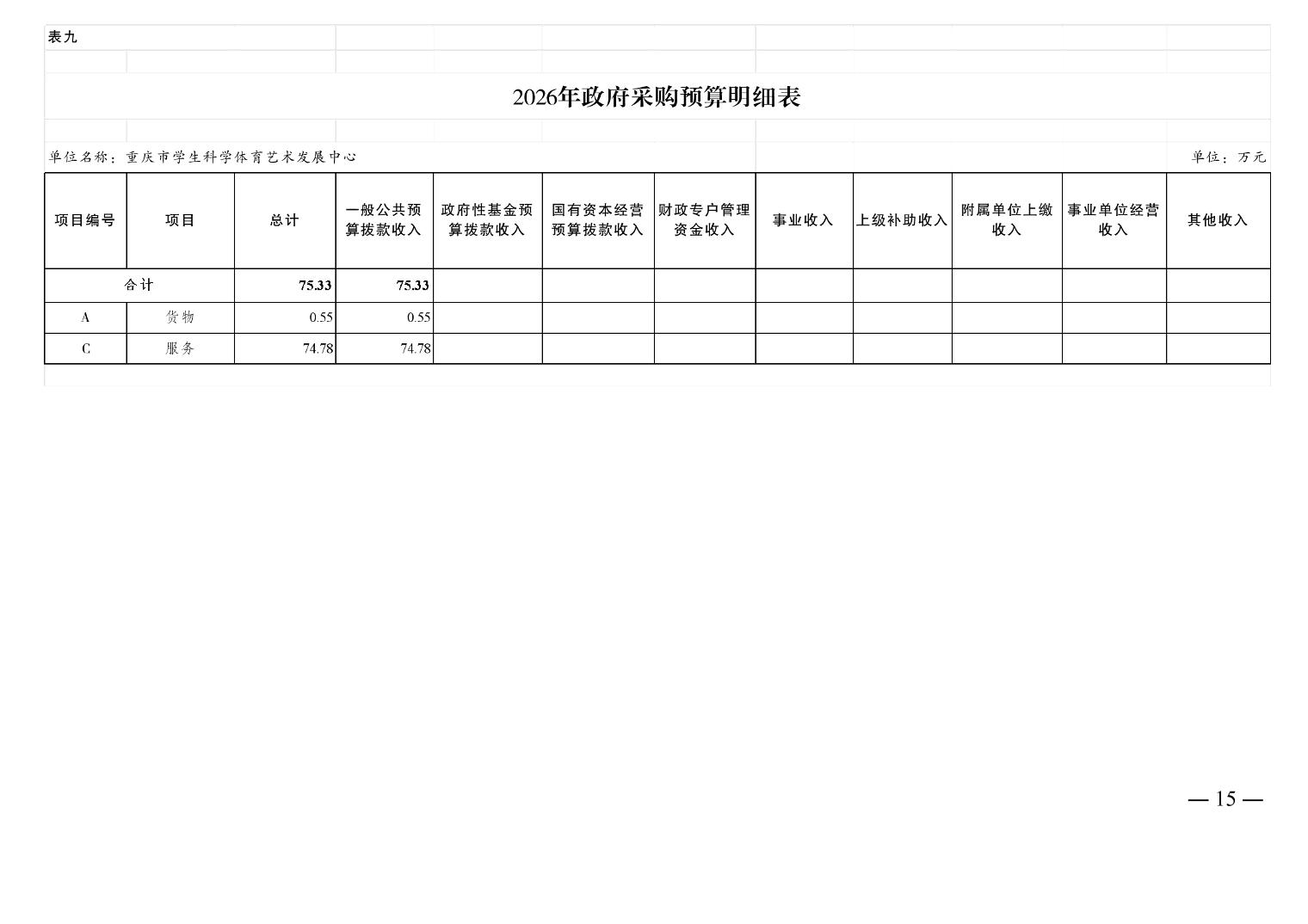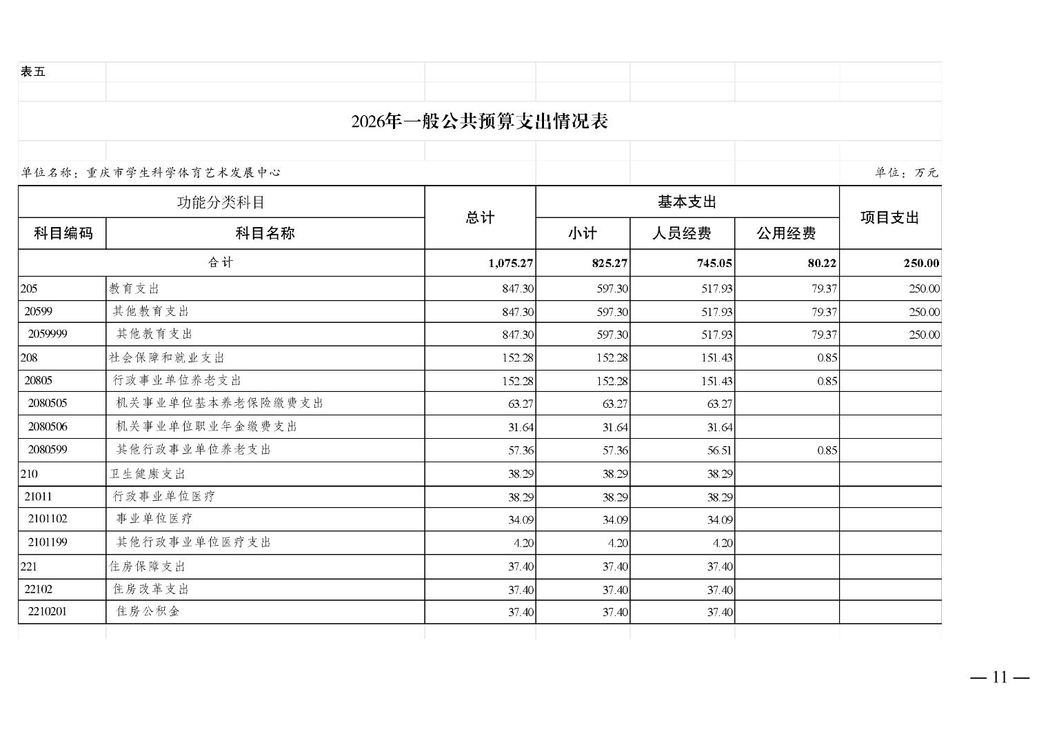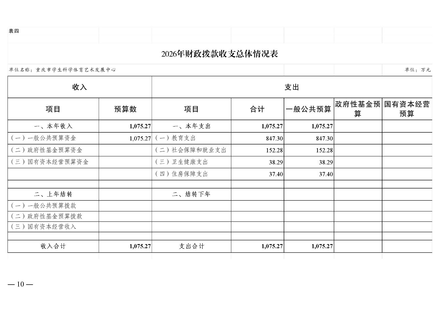 重庆市学生科学体育艺术发展中心2026年单位预算情况说明