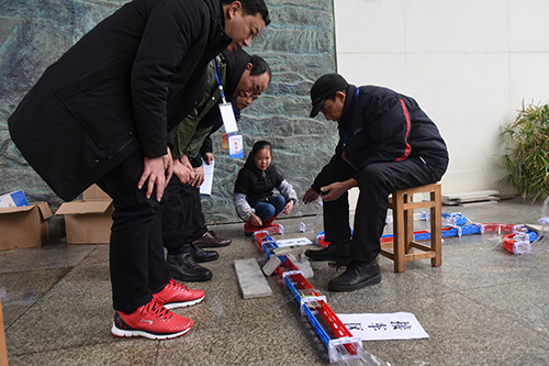 四驱车比赛现场,裁判专心执裁