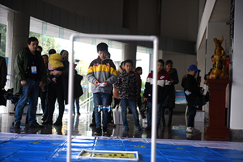 选手操控无人机穿越障碍门