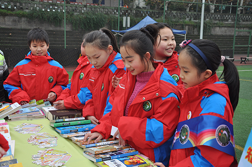 江北区和济小学在新年到来之际举行第二届阅读节暨迎新易书嘉年华活动,倡议同学们新的一年读好书、获新知