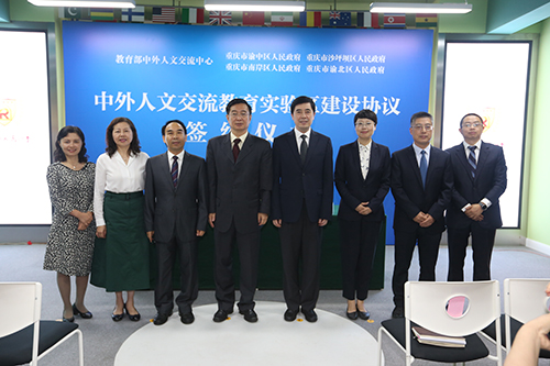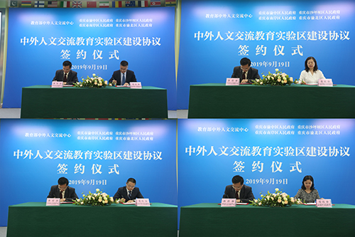 在市教委的协调推动下,9月19日,中外人文交流教育实验区建设协议集中签约仪式在重庆市人民小学举行,教育部中外人文交流中心杜柯伟主任与渝中区政府、沙坪坝区政府、南岸区政府、渝北区政府分别签署协议并授牌。市委教委工委书记、市教委主任舒立春,市政府外办党组成员、副主任张娅茜出席签约活动并讲话,市委教育工委委员、市教委副主任邓睿主持签约活动。