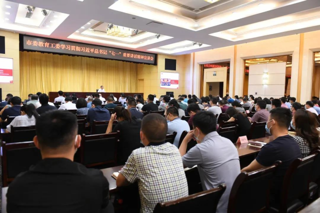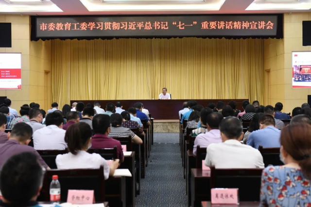 为深入学习贯彻习近平总书记“七一”重要讲话精神,推动党史学习教育深入开展,按照中央及市委党史学习教育有关部署要求,8月2日,市委宣讲团成员,市委教育工委书记、市教委主任黄政以《贯彻落实习近平总书记“七一”重要讲话精神、推动全市教育事业高质量发展》为题,为市教委机关全体干部职工开展学习贯彻习近平总书记“七一”重要讲话精神宣讲暨讲专题党课。市委党史学习教育巡回指导十七组组长王增恂一行旁听宣讲会。